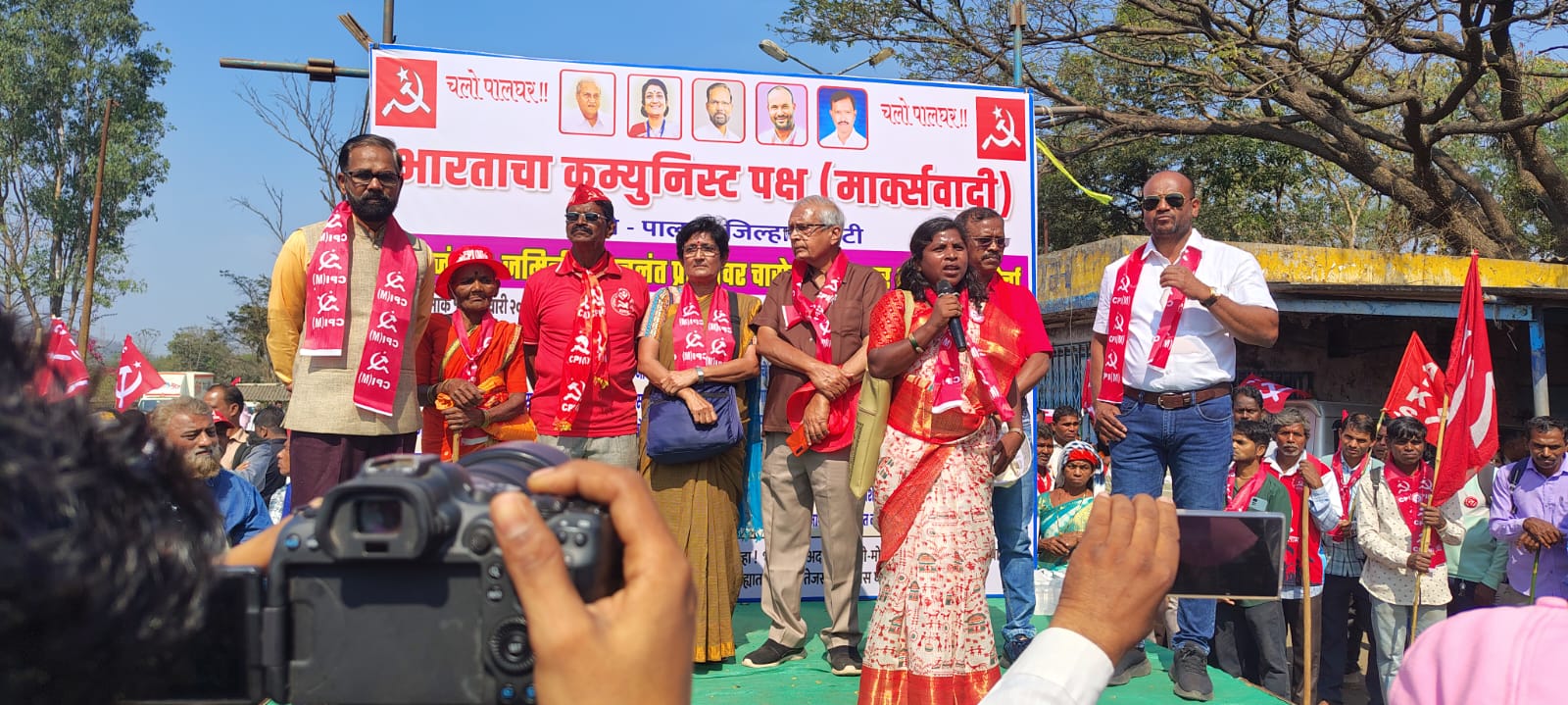 The March is being led by CPI (M) Polit Bureau member and AIKS National President Dr Ashok Dhawale, Polit Bureau member and AIDWA National General Secretary Mariam Dhawale, Central Committee member, state secretary and AIKS National Joint Secretary Dr Ajit Nawale, Central Committee member and CITU State Secretary Vinod Nikole, two-term MLA from Dahanu, State Secretariat member and AARM State Convenor Kiran Gahala, and many others. Later CPI (M) Polit Bureau member and AIKS National General Secretary Vijoo Krishnan also joined the March.