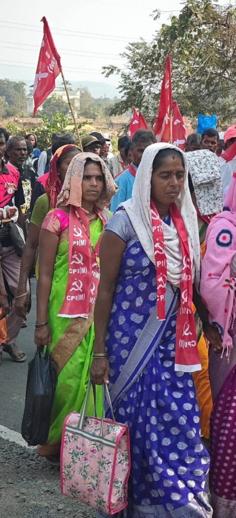 Demanding community ownership rights under the Forest Rights Act, 2006 and restitution of the Mahatma Gandhi Rural Employment programme (MNREGA), 50,000 women Adivasi and other farmers have been marching from Charoti to Palghar in Maharashtra with their demands. The key demands of this March are as follows: Rigorous implementation of the Forest Rights Act; Vesting of all temple, inaam and govt land in the name of the tillers; Restoration of MNREGA; cancellation of the Smart Metre scheme; Implementation of PESA; Repeal of the Labour Codes; Cancellation of the Wadhwan and Murbe Ports in the Dahanu coastal region; Water for drinking and irrigation; Increased facilities for education, employment, ration, health, and among others.
