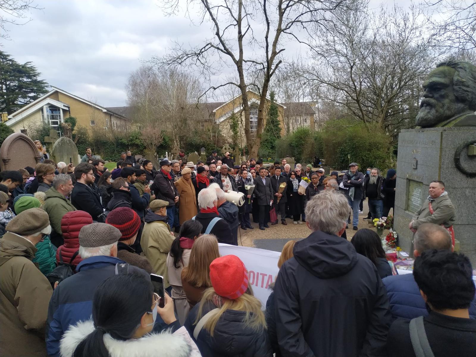 March 14, 2025 was the 142nd death anniversary of Karl Marx. On March 17, 1883, Frederick Engels had delivered his historic speech at the graveside of his closest comrade and friend Karl Marx at the Highgate Cemetery in London, where Marx lies buried. The Communist Party of Britain (CPB) and the Marx Memorial Library (MML), London have for long been jointly organising annual orations on the work and relevance of Marx every year on the first Sunday after March 14. Communist leaders and Marxist intellectuals from all over the world are invited to deliver these Marx Orations. This year, on March 16, 2025, the Cuban Ambassador to the UK Ismara Vargas Walter and CPI (M) Polit Bureau member and AIKS National President Ashok Dhawale, were invited by the CPB and the MML to deliver the 2025 Marx Orations at the Highgate Cemetery, London. Ashok Dhawale also attended the 20th conference of the CPI (M) wing in Britain and Ireland– Association of Indian Communists (AIC) – in London on March 15-16, 2025. We give below the text of Ashok Dhawale’s Marx Oration.