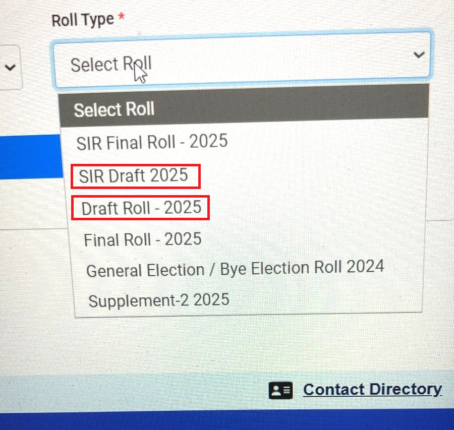 “That with regard to the elector’s statement that his name appeared in the draft roll, it is clarified that the elector/someone on his behalf had possibly checked his name on the “Draft Roll – 2025” of January 2025 on which his name was duly mentioned. It is to be noted that both the “Draft Roll- 2025” and “SIR Draft 2025” have been published by the ECI on the same web link and same drop-down menu (as shown in the image below) available at https://voters.eci.gov.in/download-eroll?stateCode=S04. His details are available on the Draft Roll – 2025 for AC 184 Part No. 52 at Serial No. 653, and every detail furnished in the affidavit matches that record” ADR stated