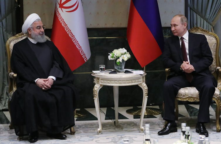 Iran’s Hasan Rouhani meets Vladimir Putin, April 2018. EPA/Mikhail Klimentyev/Sputnik/Kremlin