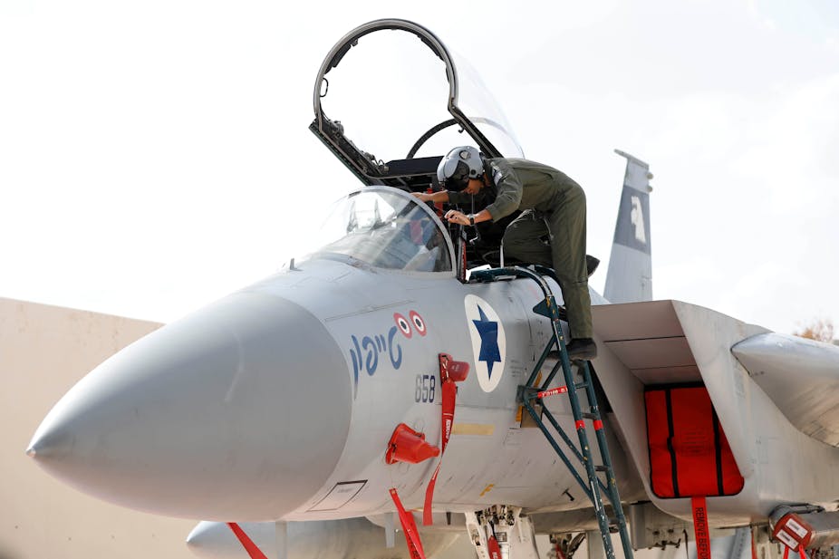 An Israeli F-16 pilot prepares for a drill. EPA/Abir Sultan