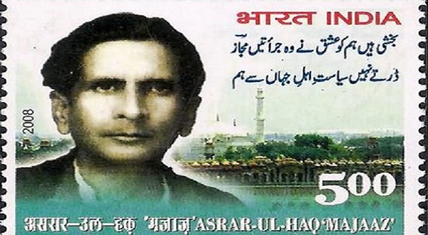 Releasing the stamp, Indian Vice-President Hamid Ansari described Majaaz as a revolutionary poet whose writings impacted an entire generation: "His poems were full of romance and revolution." From the corner of the stamp, Majaaz appeared to mock the proceedings where he must have spotted nephew and film lyricist Javed Akhtar and sister Hameeda Salim. In a message scribbled in Urdu, the dying language of India, Majaaz laughed: