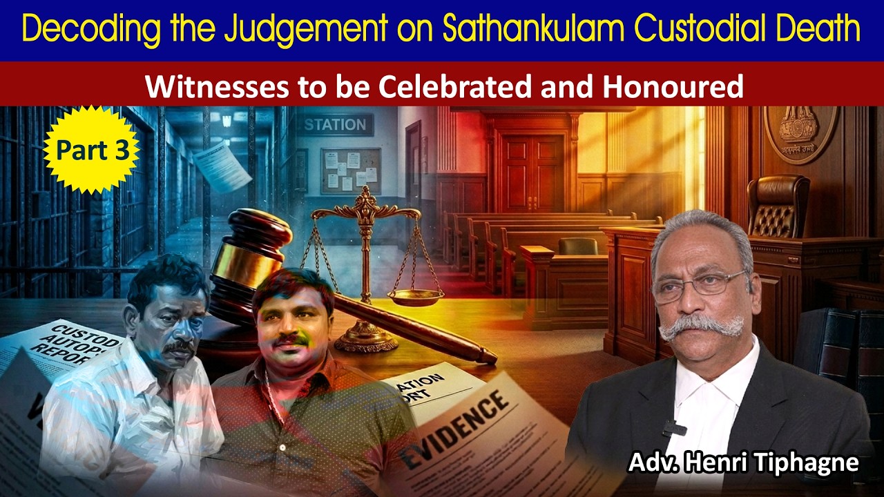 RightsRule of LawDecoding the Judgement on Sathankulam Custodial Death:Part-3 Witnesses to be Celebrated & HonouredPeople's Watch April 20, 2026ShareFacebookTwitterLinkedinWhatsApp Decoding the Judgement on Sathankulam Custodial Death:Part-3 Witnesses to be Celebrated & Honoured - Adv. Henri TiphagneRelated:Decoding the Judgement on Sathankulam Custodial Death-Part 2-Pathbreaking Orders of the High CourtDecoding the Sathankulam Judgement on Custodial Death – Part 1 – Context of Torture in IndiaTrendingFarmers Unite Show their Strength: Kisan Mukti Yatra, Telangana Dalit Bahujan Adivasi September 16, 2017 Onward March: Struggle of Maharashtra Farmers Continues Freedom October 7, 2017 How India Can Cut Rampant Antibiotic Misuse In Food Animals Freedom October 21, 2017 Gujarat govt “not interested” in turning farmers into solar power producers despite “successful” pilot project Politics August 26, 2017 IN FOCUS IndiaProcedure for tabling bills on women’s reservations & delimitation both opaque and non-consultative: Experts and Citizens sabrangindia - April 14, 2026 Rights00:23:03Decoding the Judgement on Sathankulam Custodial Death-Part 2-Pathbreaking Orders of the High Court People's Watch - April 14, 2026 Rights00:15:55Decoding the Sathankulam Judgement on Custodial Death – Part 1 – Context of Torture in India People's Watch - April 11, 2026 MinoritiesNo Hearing, No Notice, Just Deletion: How Bengal’s SIR Erased a Decorated IAF Officer Shahnawaz Akhtar - April 6, 2026 IN FOCUSRelated Articles PoliticsDelimitation: A false solution driven by centralised power Indra Kumar Theradi - April 17, 2026 Rule of LawAllahabad High Court flags surge in “false” conversion firs, seeks accountability from UP government sabrangindia - April 16, 2026 PoliticsWill delimitation have severe, undemocratic consequences following the SIR? shivasundar - April 16, 2026 Rights00:23:03Decoding the Judgement on Sathankulam Custodial Death-Part 2-Pathbreaking Orders of the High Court People's Watch - April 14, 2026 ALL STORIES Communal OrganisationsWomens Reservation Bill 2026: Women’s Rights & the RSS Shamsul Islam - April 17, 2026 PoliticsDelimitation: A false solution driven by centralised power Indra Kumar Theradi - April 17, 2026 Rule of LawAllahabad High Court flags surge in “false” conversion firs, seeks accountability from UP government sabrangindia - April 16, 2026 PoliticsWill delimitation have severe, undemocratic consequences following the SIR? shivasundar - April 16, 2026 IndiaProcedure for tabling bills on women’s reservations & delimitation both opaque and non-consultative: Experts and Citizens sabrangindia - April 14, 2026 CasteUnderstanding power through caste: Dr. Ambedkar’s contribution to the sociology of law ABHAY KUMAR - April 14, 2026 00:23:03 RightsDecoding the Judgement on Sathankulam Custodial Death-Part 2-Pathbreaking Orders of the High Court People's Watch - April 14, 2026 MinoritiesCongress and Karnataka’s Muslims: Loyalty without Representation Md Saqlain Jameel - April 13, 2026 Load moreALL STORIES