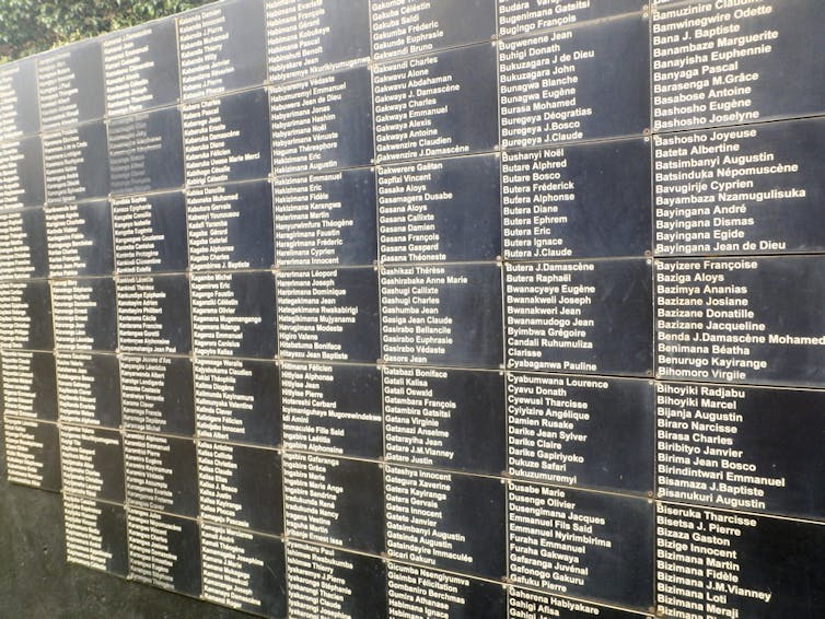 Names of victims inscribed on the National Memorial to the victims of genocide in Kigali, Rwanda. Shutterstock