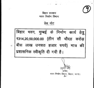 Special arrangements will also be made for patients from Bihar who come to Mumbai for the treatment of cancer and other serious diseases, along with their family members. He said the construction of Bihar Bhavan in Mumbai is an important step towards the state’s progress and public welfare.