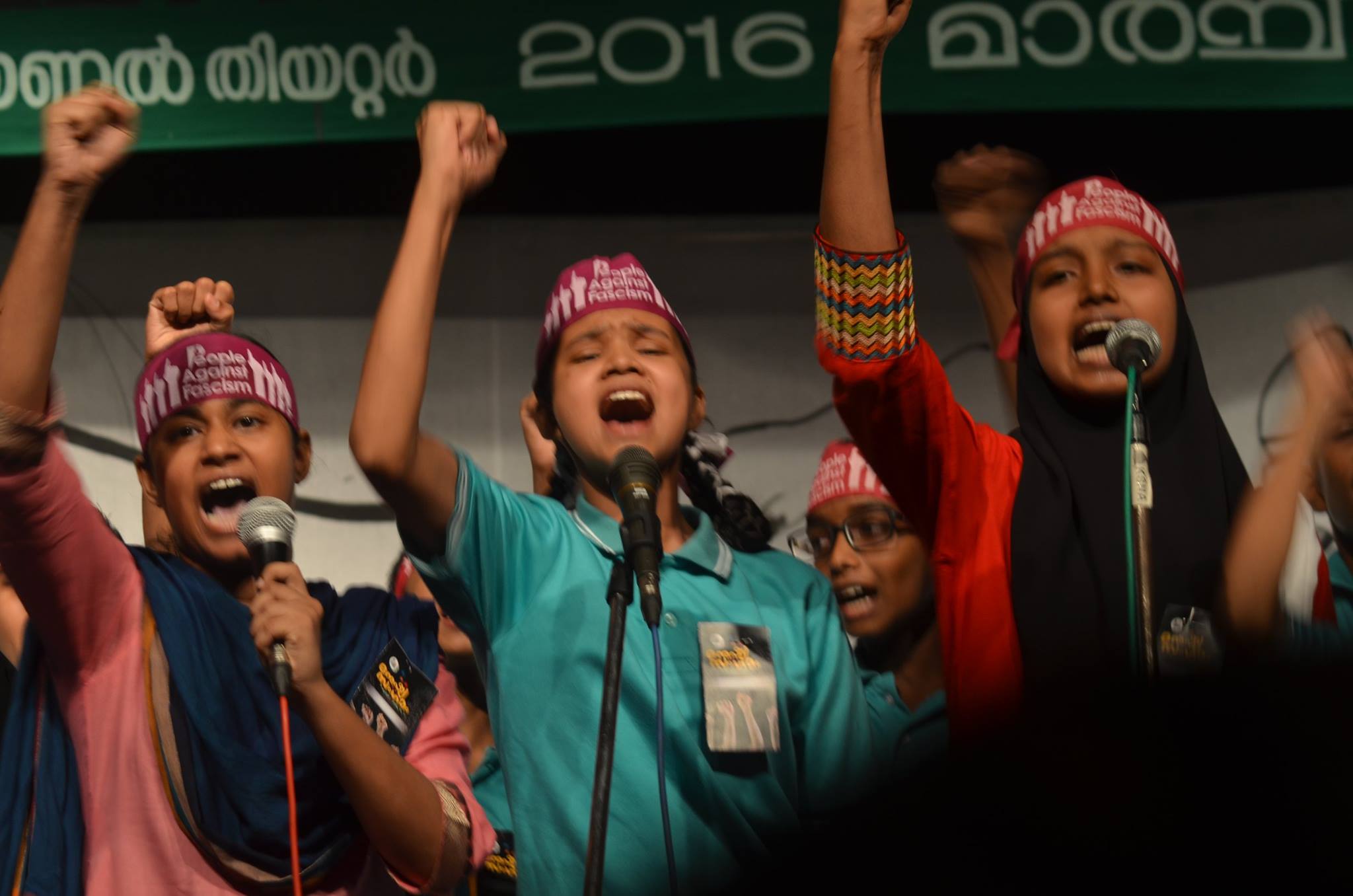 A two day meet, a Walk for Freedom, Threats by the Local Unit of the Rashtriya Swayamsevak Sangh (RSS) to stop the Protest rally in Solidarity with the protesting students at the Hyderabad Central University (HCU). THRISSUR, the Cultural Capital of Kerala responded with aplomb. Enthusiastic participation culminating in a 3,000 strong Solidarity March through the city on Sunday March 27, 2016. People Against Fascism March 26-27 2016 THRISSUR