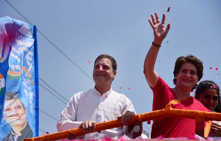 Rahul Gandhi and his sister and party member Priyanka on the campaign trail. Prabhat Kumar Verma/EPA