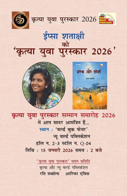 Activist and poet, Ipsa Shatkashi, will be awarded the kritya Yuva Puraskar 2026 at the World Book Fair on January 15, 2026. Awarded by the kritya, a cultural organisation, the award is a Young Achiever’s Award.