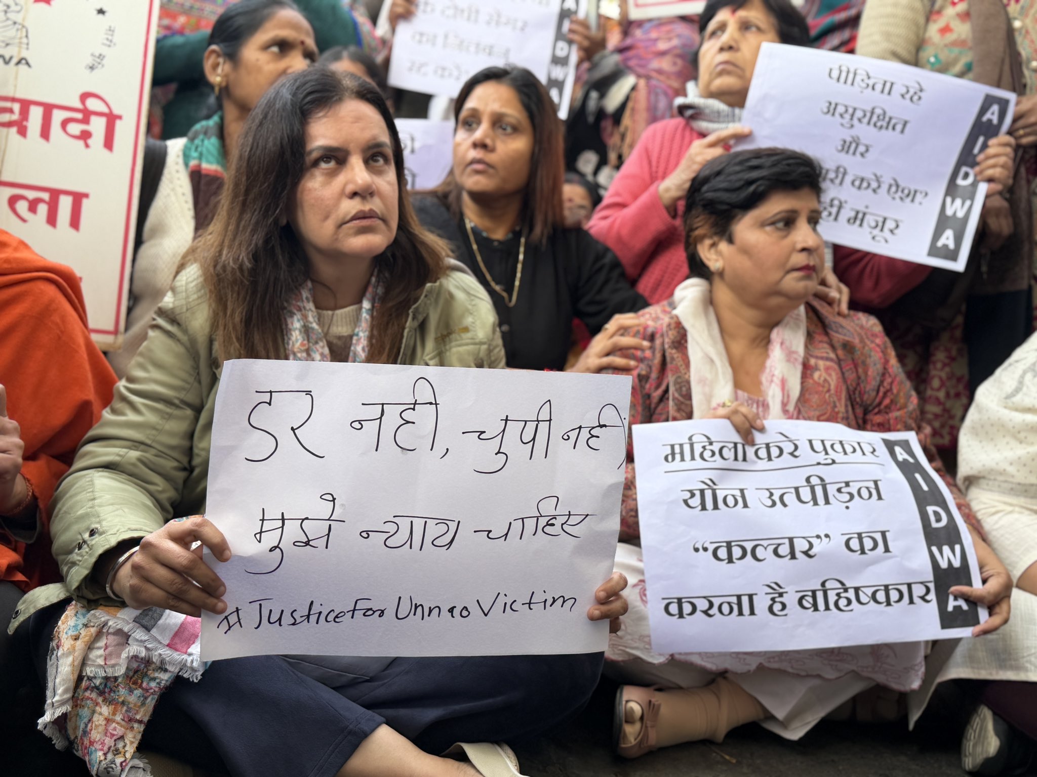 Women staged a protest outside the Delhi high court on Friday amid outrage over the court’s December 19 decision to grant conditional bail to expelled Bharatiya Janata Party (BJP) leader Kuldeep Singh Sengar in the Unnao rape case. Outrage had been mounting since earlier this week when the verdict was pronounced. Details of the conditional bail and temporary suspension of sentence may be read here. Dozens of protesters gathered near the court premises, raising slogans and expressing opposition to the bail order.