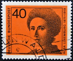 A German postal stamp from 1974 commemorating Rosa Luxemburg. Shutterstock