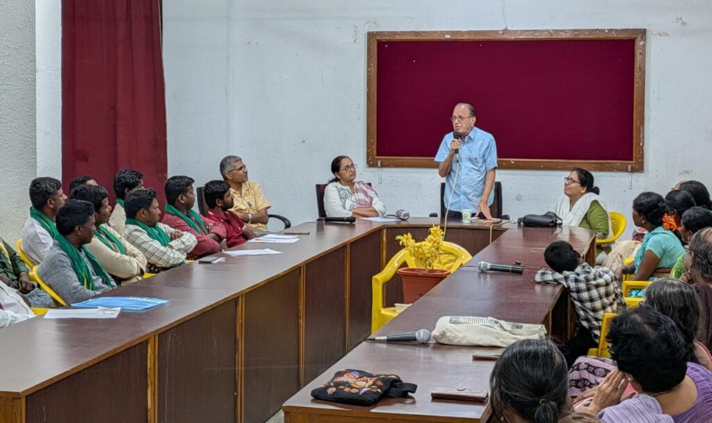 In this context, many Chenchu community members from affected villages of Sarlapally, Vatwarlapally, Kollampenta, Rayuletupenta, Uppununtala, Kudichintalabayalu came to Hyderabad on April 17, 2026 to submit petitions to the Chief Minister, through the Prajavani Grievance Cell, against the involuntary relocation and excesses of the Forest Department. They also shared their struggles and perspectives with many civil society and citizens groups, during a well-attended round table consultation on the same day. The youth and women gave very clear and cogent reasons as to why they do not want to leave their forest and how there was no proper consent or consultation with their Gram Sabhas. As Chiguru Nagamma of Kommanipenta said, “We have seen how our forefathers were displaced for other projects and whatever money came was wasted on liquor, so we do not want any money or land somewhere else. We will survive in the forest that has sustained us”.
