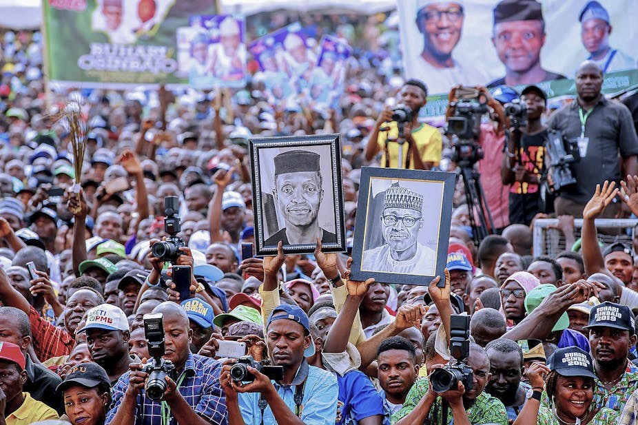 Supporters of Nigeria’s All Progressives Congress presidential candidate, President Muhammadu Buhari, at a rally earlier this year. EPA-EFE/Stringer