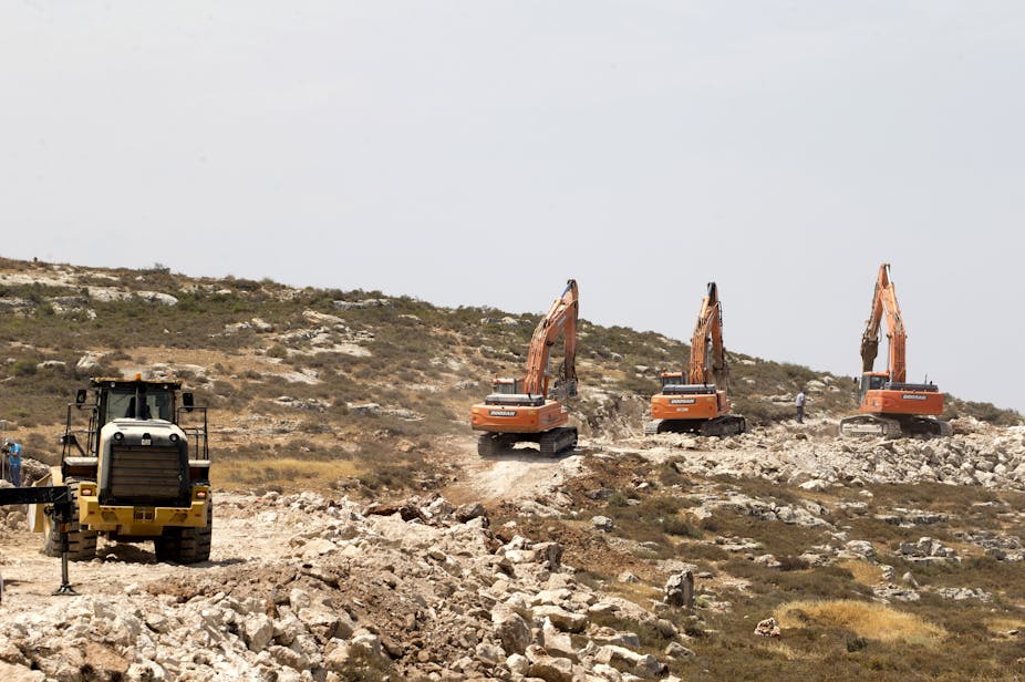 Israeli diggers work on opening new roads on a land prepared for the construction of the first Israeli West Bank settlement of Amichai in 25 years, 21 June 2017. EPA/ATEF SAFADI